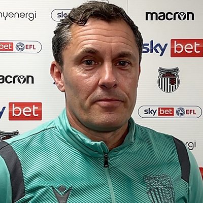 Paul Hurst speaks to Matt Dean after their defeat at Stevenage