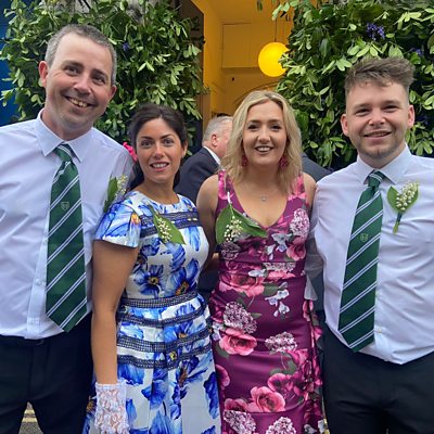 Christine Butler chats with Nigel Pascoe, Chair of Flora Day and the leading couple