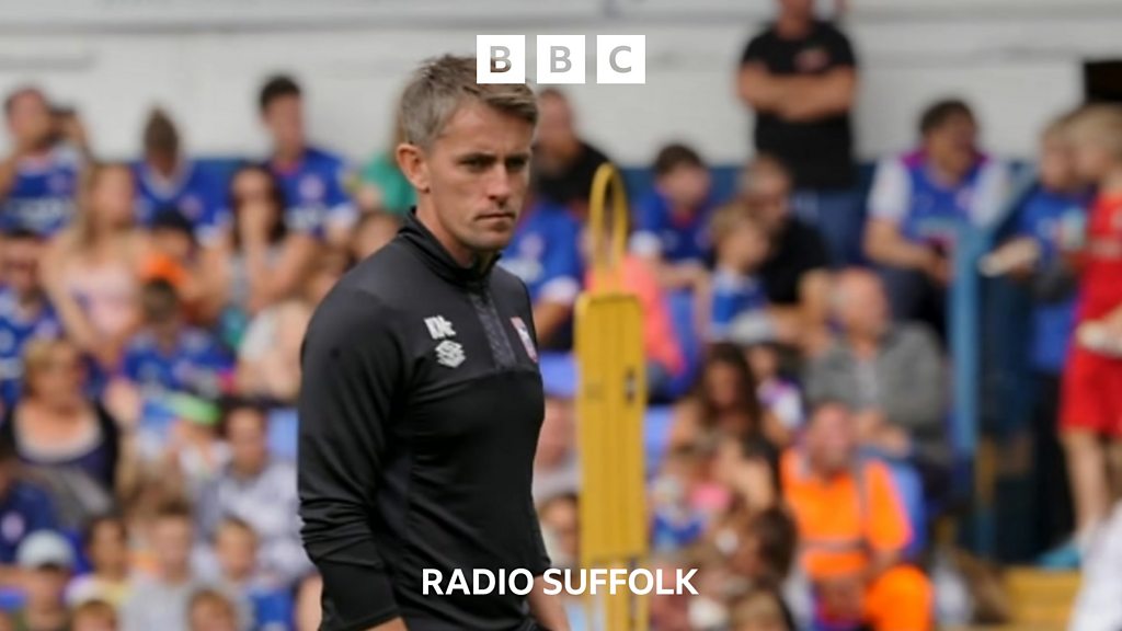 Town boss Kieran McKenna speaks with Brenner Woolley after the Blues' 2-2 draw at Fleetwood.