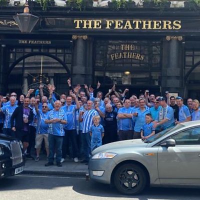 Ian Davidson, secretary of the group and members who travelled from as far as Dubai, Scandinavia, Canada, Europe and from across the UK, to meet up ahead of the play-off final, spoke to BBC CWR's Marian McNamee at The Feathers pub in central London.