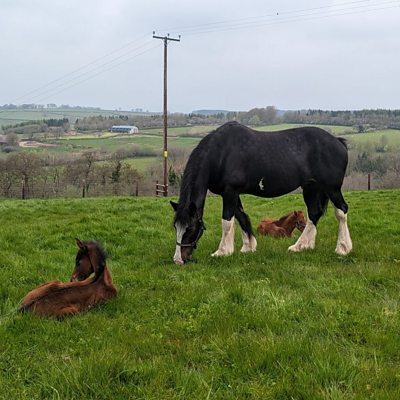 Two foals who lost their mums have got a new adoptive mare to look after them thanks to the generosity of a local farmer. Sammy the shire horse lost her own foal, so when her owner heard about two orphaned foals, she was able to step in and help out. It took a trip from the Leicestershire border down to Devon but now the trio have bonded and the foals are thriving. Sammy's owner is Cath Pegg.