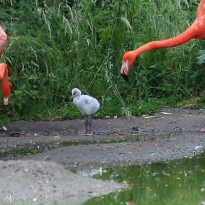 A flamingo chick has been adopted by new parents after being abandoned as an egg.