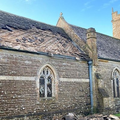A church in north Dorset needs to raise £47,000 to save it's roof after insurers refused to pay out, on grounds the damage was caused by general wear and tear. Now St Mary the Virgin church in Glanvilles Wooton has launched a Just Giving campaign to foot the bill. The damage happened in gale force winds but insurers said there was an underlying issue that weakened the roof. A spokesperson for Ecclesiastical Insurance said: "We understand that this is disappointing for the customer", adding "an expert inspection confirmed the roof collapsed due to the gradual deterioration of the fixings securing the stone slates... Unfortunately, failures of this nature are specifically excluded by the policy." Our reporter, George Sharpe, visited the church to speak to villagers behind the campaign.