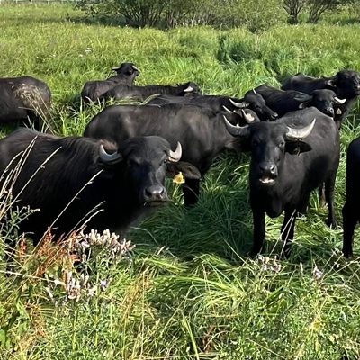 Herd of water buffalo's introduced to Thorley Wash Nature Reserve in Hertfordshire.
