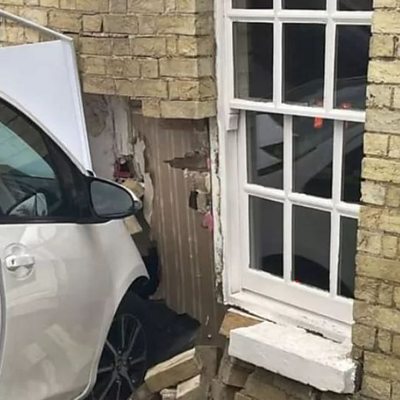 The car caused damage to the restaurant, fortunately nobody was hurt.