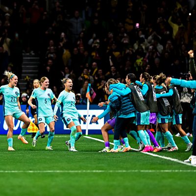 Katie Smith and Mani Djazmi are joined by not one, not two, but three former Australian internationals in the shape of Mark Schwarzer, Amy Chapman and Alicia Ferguson to reflect on the Matildas’ 4-0 thrashing of Olympic champions Canada in Melbourne to progress to the last 16 as group winners. We also hear from former Colombia international Vanessa Cordoba following Colombia’s shock 2-1 win over two-time world champions Germany in Sydney on Sunday. Photo: Steph Catley of Australia (C) celebrates her goal with her teammates during the FIFA Women's World Cup Australia & New Zealand 2023 Group B match between Canada and Australia at Melbourne Rectangular Stadium on July 31, 2023 in Melbourne, Australia. (Credit: Richard Callis/Eurasia Sport Images/Getty Images)