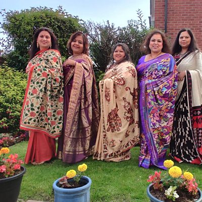 Ladies all taking part in the Saree Walkathon to mark National Handloom Day.