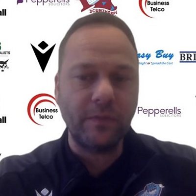 Assistant manager Chris Plummer speaks to Cameron Pope after their win over Scarborough.