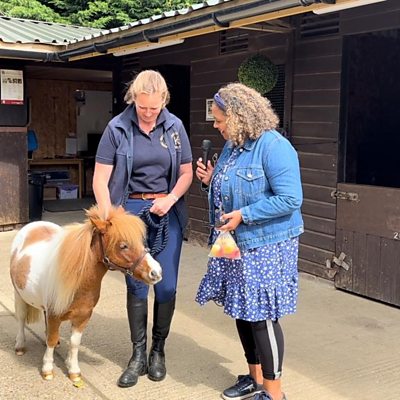 Babs Michel meets cuddle therapy ponies at Keysoe Therapy & Well-Being Centre.