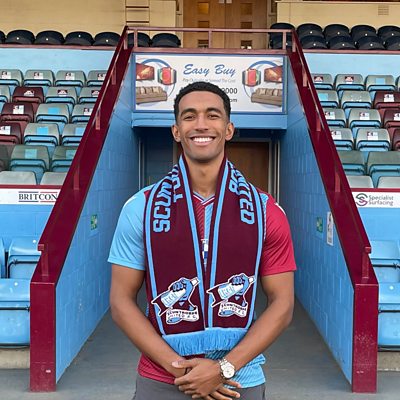Scunthorpe United's Danny Elliott talks to Chris Cooper ahead of Brackley game.
