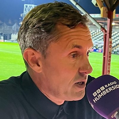 Paul Hurst talks to Matt Dean after their defeat at Wrexham