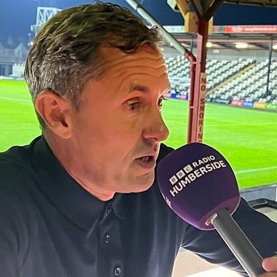 Paul Hurst talks to Matt Dean after their defeat against Crawley