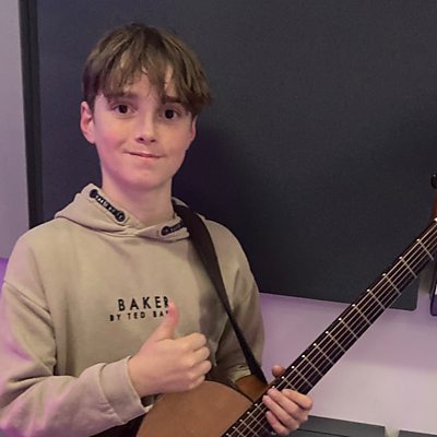 Twelve-year-old Hanley Webb performs Rebel Yell by Billy Idol at a bus stop.