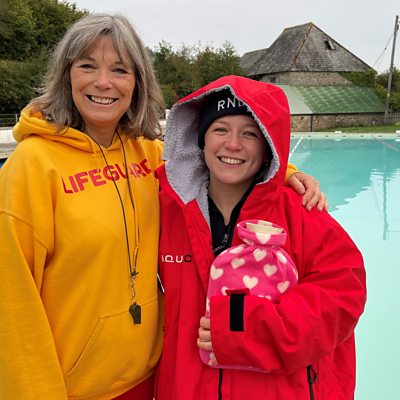 Michael Chequer watched as a brave Charlotte Cory took to the water in Chagford Pool