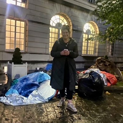Oly joined the big sleep out, and Natalie Moran from the charity, for BBC Radio Leeds