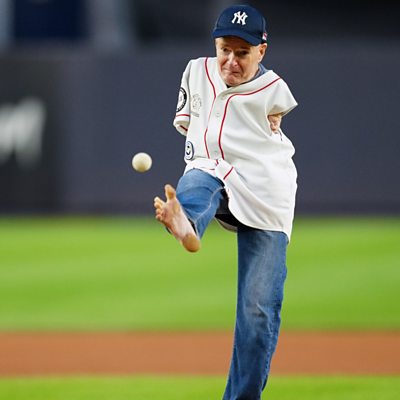 Tom Willis was born without arms, but that hasn’t stopped him from throwing a ceremonial pitch at all 30 Major League Baseball (MLB) stadiums with his feet. It’s a journey that started in San Diego in 2008 and has taken him to baseball stadium across the USA over a 15 year period before he threw his final pitch at the home of the Los Angeles Angels in October 2023. His philosophy is "I want people to focus on what I can do, rather than what I can't” and he spoke to Sportshour’s Caroline Barker about his ‘Pitch for Awareness’ national tour. Image: Tom Willis throws the ceremonial first pitch prior to the game between the Toronto Blue Jays and the New York Yankees at Yankee Stadium on Tuesday, September 19, 2023 in New York, New York. (Photo by Mary DeCicco/MLB Photos via Getty Images)