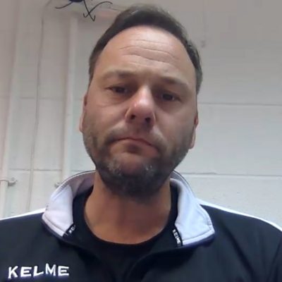 Carson Wishart talks to Assistant Manager Chris Plummer after their defeat at Chester