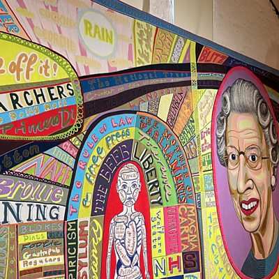 Tiffany Truscott visits Grayson Perry's "Comfort Blanket" tapestry in Helston
