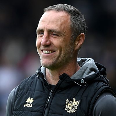 Reaction from Port Vale manager Andy Crosby, as he speaks to Phil Bowers following the Valiants reaching the Quarter Finals of the EFL Cup for the first time in their history.