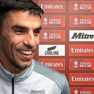 Grimsby Interim Co-Head Coach Shaun Pearson talks to Matt Dean ahead of their FA Cup tie.