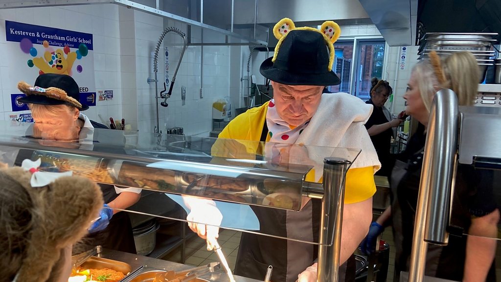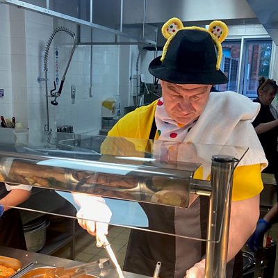Kesteven and Grantham Girls' School let Scott 'help' out in their kitchens.