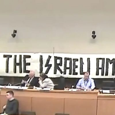Police investigate pro-Palestinian banner with Nazi symbol at council meeting
