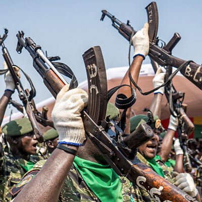 There's heightened tension in the capital of Guinea-Bissau, on the west coast of Africa, after heavy gunfire, overnight, between branches of the security forces. Members of the national guard freed a minister and a senior government official who'd been detained by police over corruption allegations in the city of Bissau. Guinea-Bissau's president, Umaro Sissoco Embaló, is currently attending the UN's climate conference in Dubai. The tensions last night stemmed from a failed coup attempt in Feburary 2022 and the country is no stranger to political instability - there have been nine attempted coups in the country since 1980. Alberto Dabo, a journalist in Bissau, told Newshour's Paul Henley more about what had been going on in Bissau. (File photo of members of the armed forces in Guinea-Bissau brandishing weapons on a parade on 16 November 2023. Credit: Samba Balde/AFP)