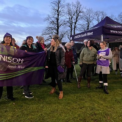 BBC's Dan O'Brien reports on community health workers Strike action across Wiltshire, due to missing out on the NHS staff bonus in recognition of the work during the pandemic.