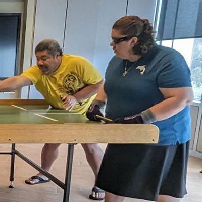 Ever heard of the sport swish? It’s a modified version of table tennis developed by visually impaired athletes in Australia. Often described as a mix between table tennis and air hockey, players hit the cricket-sized ball under a solid screen using a rectangular bat with the aim of getting the ball past their opponent at the other end of the table. It’s known for its inclusivity and the fact players – whether they are blind, vision impaired or have full sight – compete on almost equal terms. Sportshour’s Shabnam Younus-Jewell speaks to Jenni Forbes from Frankston Swish Club in Australia to find out more. Photo: Jenni Forbes plays the Australian sport of Swish. (Credit: Jenni Forbes)