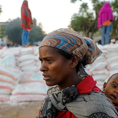 Ethiopia has a tragic history of famine - and now one of the world's leading experts on the issue is raising the alarm again. Alex de Waal - the director of the World Peace Foundation, who has been studying famines in the region since the 1980s - says the world needs to pay more attention to Ethiopia. One of the most affected areas is Tigray, in the north of the country, which is still recovering from a devastating two-year long conflict with the federal government. Local officials there have said more than a thousand people have already died due to hunger in recent months. But Alex de Waal told Newsday it is not the only part of Ethiopia which is feeling the pinch and there is a real threat to life. “There hasn’t been a major relief response, clearly international agencies are clearly over-stretched by multiple crises around the world. But it would be tragic if, yet again, a response only comes when it’s too late to stop many tens of thousands of people from starving.” (Pic: A woman carries an infant as she queues in line for food during the war in Tigray (FILE); Credit: Reuters)