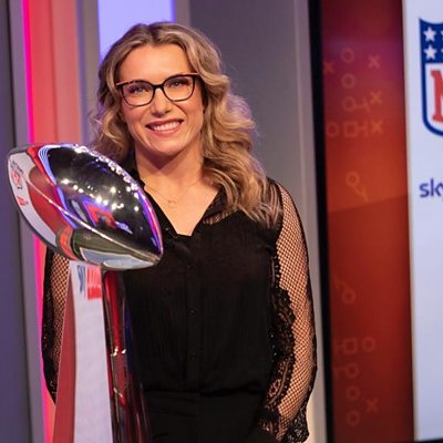 Former NFL coach and GB Women’s player Phoebe Schecter tries to teach Miles Blumson how American Football works.