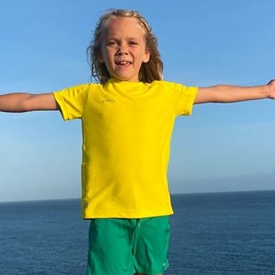 Orkney, aged eight, and mum Samaya explain how they will cover 13 miles around Scilly.