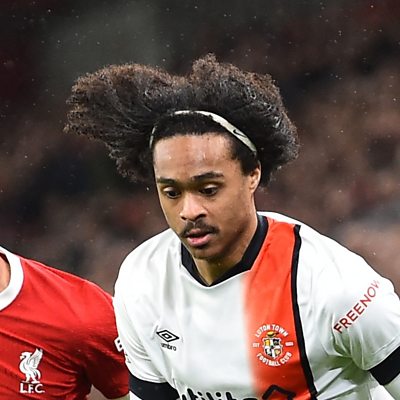 Luton midfielder Tahith Chong reacts after losing 4-1 against Liverpool.