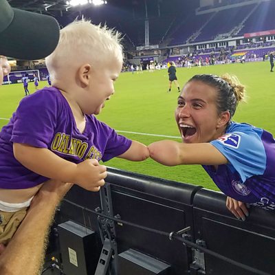 Racing Louisville FC defender Carson Pickett was born without part of her left arm and Pickett went viral in 2019 after she was pictured giving an arm-bump with a young fan who was also missing part of his left arm. In 2022, Carson Pickett became the first player with a limb difference to play for the United States women's team and she told BBC Sportshour's Caroline Barker how her life has changed since that photo went viral. Photo: Carson Pickett pictured giving an arm-bump to Joseph Tidd, the then 2-year-old who was also missing part of his left arm. (Credit: @tiddbit_outta_hand/Instagram)