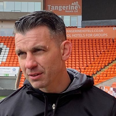 Wycombe boss Matt Bloomfield reacts after drawing 0-0 against Blackpool.