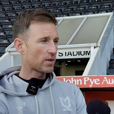 MK Dons boss Mike Williamson reacts after drawing 3-3 against Notts County.