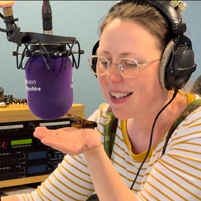 Moth breeder, Lois Clarke, brought two Death's-head hawkmoths to the studio.