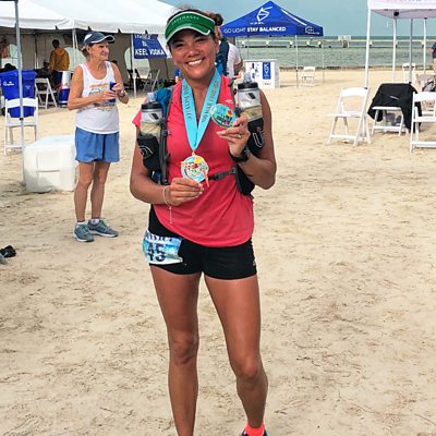 From the Moroccan desert to the Peruvian jungle, British endurance runner Susie Chan’s adventures have taken her all around the world. She has completed the Marathon des Sables more times than any other British woman, set the 12-hour treadmill world record and was one of the first women to finish all the world marathon majors. But she tells Sportshour’s Caroline Barker how her love for running came later in life and how it’s helped her through some of her toughest moments. Image: Susie Chan holding one of her many race medals at the finish line of an endurance race. (Photo courtesy of Susie Chan)