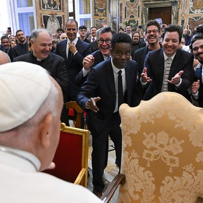 The Pope has said it is ok to "laugh at God" in the same way that we joke with loved ones. And to demonstrate his point, he hosted a meeting with some of the world's best known comedians including Whoopi Goldberg, Chris Rock and Jimmy Fallon. Newshour's Paul Henley has been speaking to the German comedian Michael Mittermeier who explained how he managed to get the Pope to laugh. (Picture: More than a hundred comedians including Chris Rock and Jimmy Fallon met the Pope at the Vatican. Credit: VATICAN MEDIA HANDOUT/EPA-EFE/REX/Shutterstock)