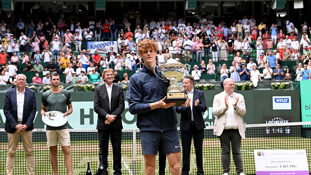 It's been whirlwind 2024 for men's tennis star, Jannik Sinner. The Italian won his first Grand Slam at the Australian Open in January and replaced Novak Djokovic at the top of the world rankings earlier in June. He will be the top seed at Wimbledon, which begins on 1 July, as he looks to go one step further than his semi-final showing from last year. He told Sportworld’s Lee James about how his life has changed over the last year and his hopes for the Paris Olympic Games. Photo: Italy's Jannik Sinner holds his trophy after defeating Poland's Hubert Hurkacz in the men's singles final tennis match of the ATP 500 Halle Open tennis tournament in Halle, western Germany on June 23, 2024. (Credit: AFP via Getty Images)