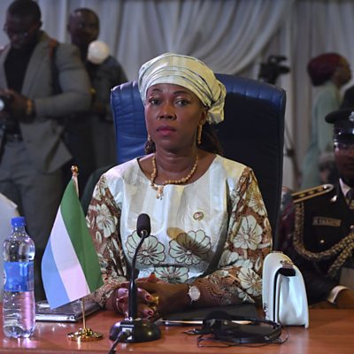 A new law banning the traditional practice of child marriage in Sierra Leone has been signed into law by President Julius Maada Bio. Anyone involved in arranging the marriage of any girls under 18 could get 15 years in jail or fined around $4,000, or both. Newshour’s Rebecca Kesby asked Sierra Leone's First Lady Fatima Bio, who championed the bill, why this law was so important. (Photo: First Lady of Sierra Leone Fatima Bio. Credit: Getty Images)