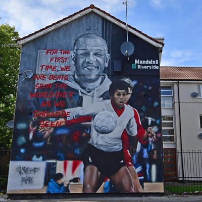 Howard Gayle talks to reporter Tom Walker about new mural honouring him