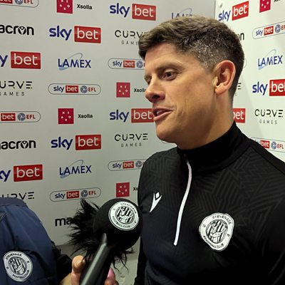 Stevenage head coach Alex Revell reacts after the 1-0 win over Crystal Palace u21s.