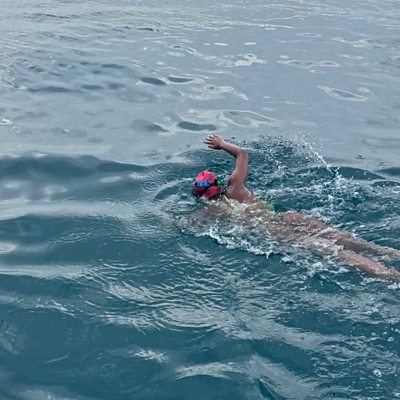 Prisha and coach Jeremy told Andy Collins all about the 34km swim.
