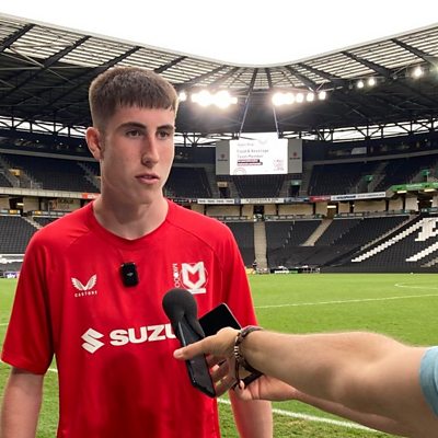 MK Dons midfielder Callum Tripp reacts after receiving Man of the Match against Walsall.