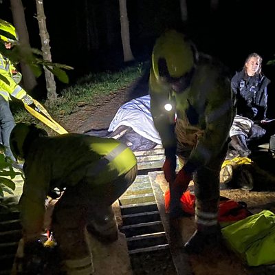 The owners of a young shire horse in Cornwall have thanked the emergency services and local supporters after he had to be rescued from a cattle grid. Four-year-old Piper suffered serious injuries after he got three of his legs trapped in the metal grid, it took four hour to cut him free. As well as injuries to his legs, face and body, Piper has a shattered front tooth that requires specialist attention. His owner Sara Phillips told Julie Skentelbery how she had started an online appeal to cover the spiralling bills. Pic: Tolvaddon Community Fire Station.