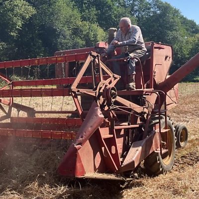 Christine Butler meets farmer John Hosking and his old combine harvesters.