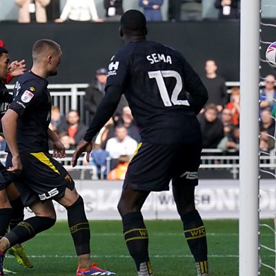 Luton Town captain Carlton Morris reacts after scoring in the 3-0 win over Watford.