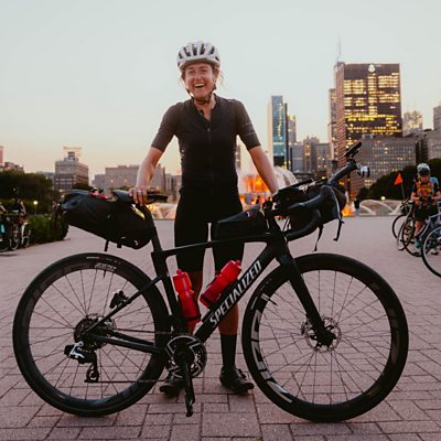 Lael Wilcox has set a new world record for the fastest woman to circumnavigate the globe by bike. Her journey took 108 days, 12 hours and 12 minutes to cycle 29,169km (18,125 miles), starting and ending in Chicago. She beat the 2018 record held by Jenny Graham, from Scotland, whose journey took 124 days 11 hours. Riders are required to start and end in the same place, always travelling in the same direction. A rider’s entire journey, including flights, ferries and public transit, must equal a total distance equivalent to 40,000km – the circumference of the Earth’s equator. The minimum distance travelled by bike must surpass 28,970 km. She tells Sportshour’s Caroline Barker about the support she received from people around the world and how it even caught the attention of tennis legend Billie Jean King. Image: Lael Wilcox holding her bike in Chicago after completing her challenge of cycling around the world. (Credit: Rugile Kaladyte)