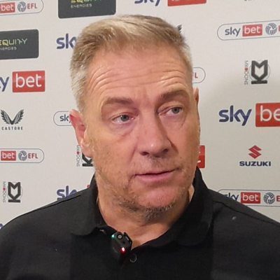 Scott Lindsey reacts after MK Dons come back from 2-0 down to beat Cheltenham 3-2.